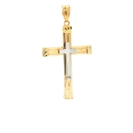 14K Yellow and White Gold Double-Layer Cross Big Pendant, (40mmx22.30mm)