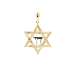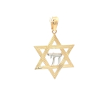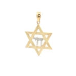 14K Yellow and White Gold Star of David Pendant With Chai Symbol, 32mm