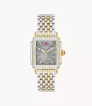 MICHELE Deco Mid Two-Tone 18K Gold-Plated Quartz Grey Mother of Pearl Dial Diamond Bezel Watch, MWW06V000132