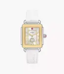 MICHELE Deco Sport Mid Two-Tone Gold-Plated White Silicone Band Watch, 31mm