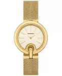 - Polished gold-tone stainless-steel case and mesh bracelet