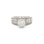 Celebrate your love with our 14K White Gold Engagement Ring, a true symbol of timeless elegance and sparkle. This exquisite piece features a captivating round checker illusion cut natural diamond at its center, creating an eye-catching brilliance that will leave her speechless. The baguette channel diamonds add a touch of sophistication, while the pavé band detailing enhances the ring's overall allure. Designed for those who appreciate classic beauty with a modern twist, this ring is perfect for unforgettable moments. Available in size 8, it offers a comfortable fit, ensuring she can wear it with pride every day. Make your proposal unforgettable with this stunning engagement ring, crafted to symbolize your everlasting commitment.