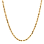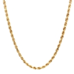 Elevate your style with our 10K Yellow Gold Rope Link Chain, a 24-inch masterpiece that exudes elegance and timeless charm. This exquisite jewelry piece is meticulously crafted for both durability and a radiant shine, ensuring it remains a staple in your collection for years to come. The intricate rope link design adds a touch of luxury and sophistication, making it the perfect accessory to enhance any outfit, whether you're dressing up for a special occasion or adding a hint of glamour to your everyday look. Ideal for those who appreciate classic beauty and quality craftsmanship, this chain is not just an accessory—it's a statement of refined taste. Treat yourself or a loved one to this luxurious piece and experience the allure of fine jewelry.