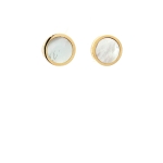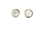 14 K Yellow Gold Mother of Pearl Circle Stud Earrings, (
