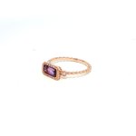 14K Rose Gold Beaded Band Ring with a Horizontal Emerald-Cut Amethyst and 0.08ct Bezel-Set Natural Diamonds, Size 7