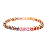 14K Rose Gold Tennis Bracelet With Multi-color Sapphire, Size 7.25"