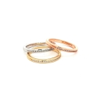 Elevate your jewelry collection with our exquisite 14K Three-Tone Stackable Bands, each set with 0.10ct of natural diamonds. Crafted for the modern woman who appreciates versatility and elegance, these rings feature a harmonious blend of white, rose, and yellow gold. The subtle sparkle of the diamonds adds a luxurious touch, perfect for both daily wear and special occasions. Whether you choose to wear them individually or stacked, these bands offer endless possibilities for personal expression. Designed for comfort and style, they are a timeless addition to any outfit, promising to enhance your look with their sophisticated charm. Available in size 6, these bands are the epitome of elegance and versatility.