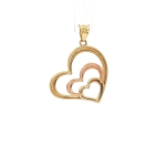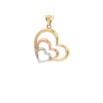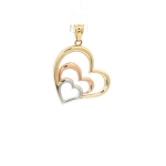 14K Three-Tone Triple Heart Pendant, 26mm