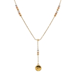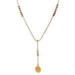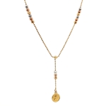 14K Three-tone Gold Beaded Necklace with Guardian Angel Pendant, 16"