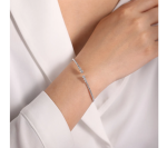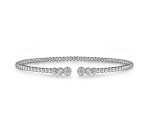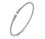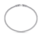 14K White Gold Bujukan Bead Split Cuff Bracelet with 0.23ct Bezel Set Diamonds, Size 5.75