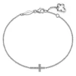 14K White Gold Diamond Cross Chain Bracelet .07CTW Diamond