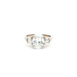 14K White Gold Ring With Oval & Baguette-Cut Cubic Zirconias, Size 7