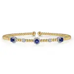 14K White-Yellow Gold Bujukan Sapphire and Diamond Halo Bangle .20CTW Diamond
