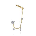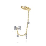 14K White-Yellow Gold Single 0.18ct Diamond Stud With Chain Drop And Ear Cuff