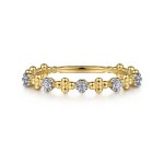 14K Yellow Gold Beaded 0.06ct Diamond Stackable Ring-Bujukan, Size 6.5