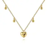 14K Yellow Gold Bujukan Station Necklace with Heart Drop, 17.5"