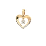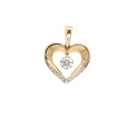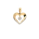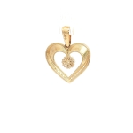 14K Yellow Gold CZ Heart and Flower Pendant, 19.4mm