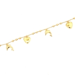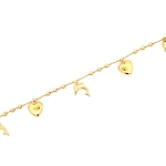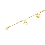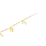 14K Yellow Gold Dangle Dolphin & Hearts Bracelet, 7.5"