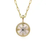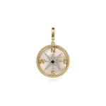 14K Yellow Gold Diamond Blue Sapphire Compass Medallion Pendant With Detachable Bail