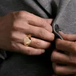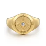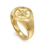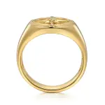 14K Yellow Gold Diamond Compass Signet Ring, Size 10