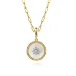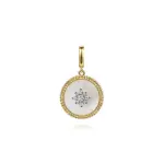 14K Yellow Gold Diamond Mother of Pearl Medallion Pendant in size 18mm With Detachable Bail