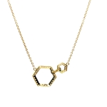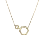 14K Yellow Gold Double Hexagon Pendant Necklace with 0.25ct Natural Diamonds, Size 18"