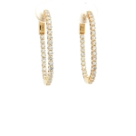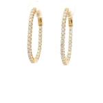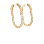 14K Yellow Gold Elongated In-out Hoops With 1.00ct Round Natural Diamonds, ( Dimensions 18.8x28.8x1.7mm)