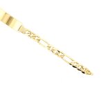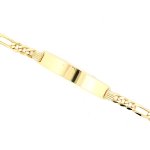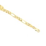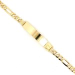 Unveil timeless elegance with our 14K Yellow Gold Figaro Link ID Bracelet, a perfect blend of luxury and personalization. Crafted from rich 14K yellow gold, this bracelet features the classic Figaro link design, renowned for its alternating pattern of short and long links, offering a sophisticated touch to any ensemble. The polished ID plate is ideal for engraving, allowing you to add a personal message or initials, making it a meaningful gift or a cherished keepsake. Its durable construction ensures it withstands daily wear while maintaining its radiant shine. Whether you're dressing up for a special occasion or adding a touch of elegance to your everyday look, this bracelet is your go-to accessory. Available in a sleek, lustrous finish, it effortlessly complements both casual and formal attire. Elevate your style and make a statement with this exquisite piece.