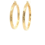 14K Yellow Gold Flat Diamond -Cut Hoops, Big Size ( Round 35.8mm )