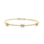 14K Yellow Gold Flowers Beaded Openable Bangle with 0.34ct Natural Diamonds