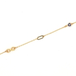 Step into elegance with our 14K Yellow Gold Infinity & Evil Eye Station Anklet. This exquisite piece combines timeless beauty with symbolic protection, featuring a delicate chain adorned with an infinity symbol and an enchanting evil eye charm. The anklet, measuring 9 inches, gracefully wraps around your ankle, offering a touch of sophistication to any outfit. Crafted from high-quality 14K yellow gold, it promises durability and a radiant shine. The intricate design includes charming heart and star accents, adding a playful yet chic element. Whether you're dressing up for a special occasion or adding flair to your everyday look, this anklet is the perfect accessory. Ideal for gifting or personal indulgence, it’s a meaningful addition to any jewelry collection.