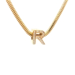 14K Yellow Gold Initial R Charm with Cubic Zirconia