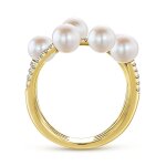WOMENS > 14K Yellow Gold Multi-Pearl Diamond Cuff Ring with 0.30ct Natural Diamonds, Size 6.5
