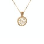 14K Yellow Gold Open Circle Lattice Floating Drop Pendant with 0.55ct Natural Diamonds