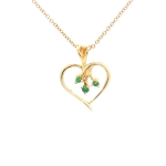14K Yellow Gold Open Heart Pendant with Three Round-Cut Emeralds