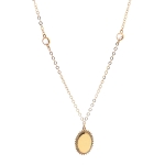 14K Yellow Gold Oval Engravable Cubic Zirconia Pendant Necklace with Bezel-Set CZ Station Chain, 17"