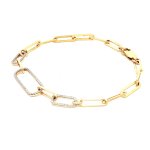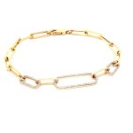 Indulge in timeless elegance with our 14K Yellow Gold Paperclip Diamond Bracelet. Measuring 7.5 inches, this exquisite piece features a unique paper clip design adorned with 0.31 carats of dazzling diamonds. The lustrous yellow gold links are both modern and sophisticated, making it a versatile accessory for any occasion. Whether you're dressing up for a formal event or adding a touch of luxury to your everyday ensemble, this bracelet is your perfect companion. Its secure clasp ensures a comfortable fit, while the sparkling diamonds catch the light beautifully, enhancing your natural elegance. Elevate your jewelry collection with this stunning bracelet that promises to be a cherished favorite.