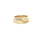 Elevate your elegance with our 14K Yellow Gold Ring, adorned with a dazzling 0.25ct natural diamond. Crafted for those who appreciate timeless sophistication, this exquisite piece is perfect for adding a touch of sparkle to any ensemble. The ring, available in size 7.5, features a sleek band of lustrous yellow gold, accentuated by a unique diagonal design of shimmering diamonds. Whether you're attending a formal event or simply want to enhance your everyday style, this ring promises to be a cherished addition to your jewelry collection. Embrace luxury and let your style shine.