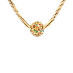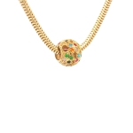 14K Yellow Gold Round Slider Charm With Multicolor Cubic Zirconia Flowers