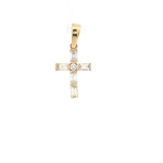 14K Yellow Gold Small Cross Pendant With CZ Emerald Cut, 20.3mm