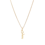 Celebrate love with our exquisite 14K Yellow Gold Stacked LOVE Necklace, adorned with 0.05ct natural diamonds. This elegant piece features a unique vertical arrangement of the letters L-O-V-E, each letter sparkling with finely set diamonds, creating a captivating shimmer that catches the light beautifully. The adjustable 18" chain ensures a perfect fit for any neckline, making it versatile for both day and evening wear. Whether you're treating yourself or gifting someone special, this necklace adds a touch of romance and sophistication to any outfit. Its timeless design and luxurious materials make it a cherished keepsake for years to come. Embrace elegance and emotion with this stunning piece.