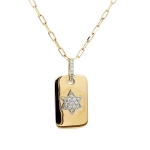 Embrace the perfect blend of tradition and contemporary elegance with our 14K Yellow Gold Tag Pavé Star of David Pendant. This exquisite piece features 0.18ct of natural diamonds, meticulously set to illuminate the iconic Star of David. The pendant gracefully hangs from an 18" paperclip chain, adding a modern twist to a timeless symbol of faith. Crafted for those who cherish their heritage, this pendant is more than just a piece of jewelry—it's a statement of identity and sophistication. Ideal for daily wear or special occasions, it promises to add a touch of sparkle and meaning to your ensemble. Let your faith shine with unparalleled brilliance.