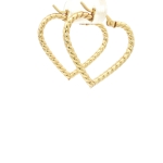 14K Yellow Gold Twisted Rope Heart Hoops, Medium Size ( Round 26mm )