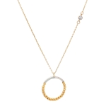 14K Yellow & White Gold Beaded Circle Pendant Necklace, 17" ( Adjustable )