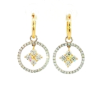 14K Yellow & White Gold Flower Halo Dangle Earrings with 0.93ct + 0.45ct Natural Diamonds