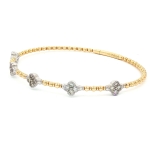 14K Yellow & White Gold Flower Openable Bangle with 0.63ct Natural Diamonds, Size 6.75"