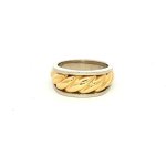 Elevate your elegance with our 14K Yellow & White Gold Ring, size 6.5. This exquisite piece showcases a harmonious blend of yellow and white gold, creating a striking dual-tone design that exudes timeless sophistication. Ideal for both special occasions and everyday luxury, this ring is a testament to refined taste and craftsmanship. The intricate rope detailing adds a touch of texture, making it a standout accessory that complements any outfit. Crafted for those who appreciate the finer things in life, this ring is more than just jewelry—it's a statement of style and grace. Indulge yourself or gift a loved one with this captivating piece that promises to be cherished for years to come.