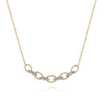 14K Yellow-White Gold Twisted Rope Oval Link Necklace with Diamond Connectors .25 CTW Diamond 17.50" Inches