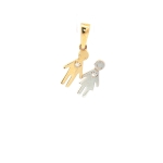 Celebrate cherished connections with our 14K Yellow and White Gold Boy and Girl Pendant, a delightful piece adorned with sparkling cubic zirconia stones. This 21mm pendant beautifully captures the essence of innocence and love, making it a perfect gift for mothers, grandmothers, or anyone who treasures family bonds. Crafted with a harmonious blend of yellow and white gold, this charming duo adds a touch of elegance to any ensemble. The pendant's heart-shaped CZ accents shimmer subtly, ensuring you stand out with grace and sophistication. Whether for a special occasion or everyday wear, this pendant is a timeless reminder of the precious relationships in your life.