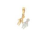 14K Yellow and White Gold Boy and Girl Pendant With Cubic Zirconia, 21mm